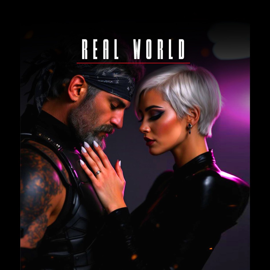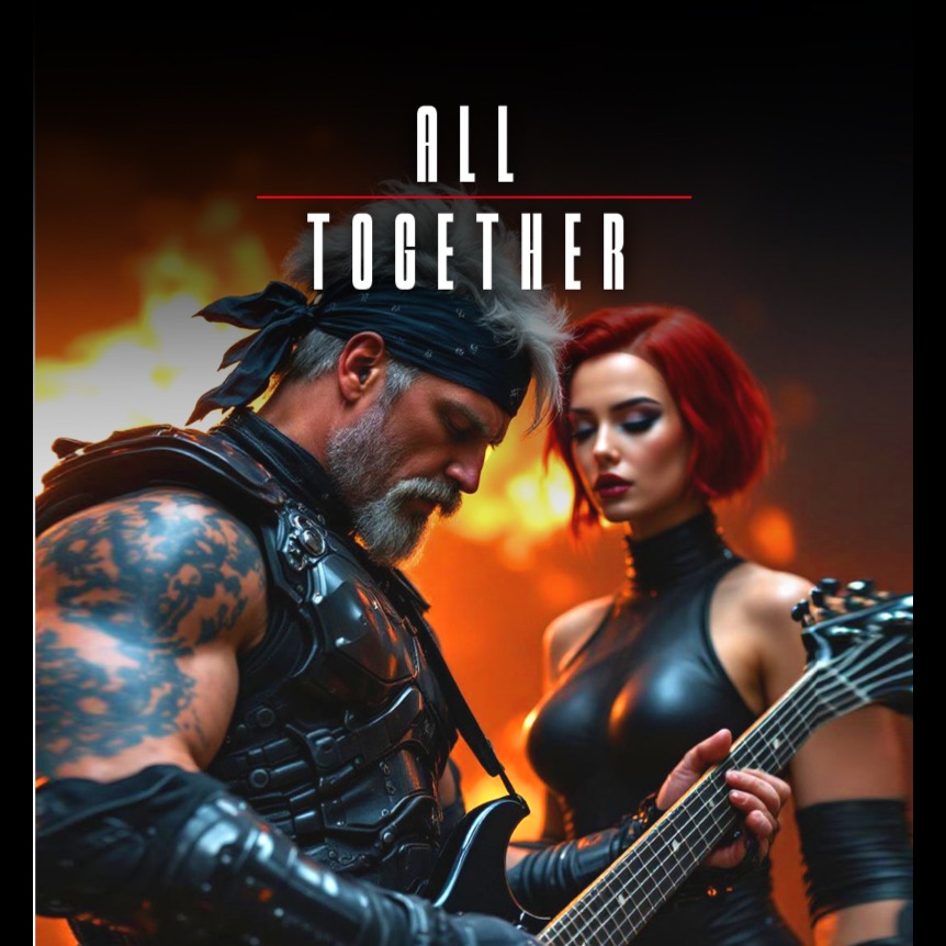 Deep gritty male voice with a gravelly baritone and growling delivery, Male and Female Duet, Alternating Vocals, Live 1980s arena rock energy unfolds: driving bassline, triumphant synth brass, punchy gated reverb drums