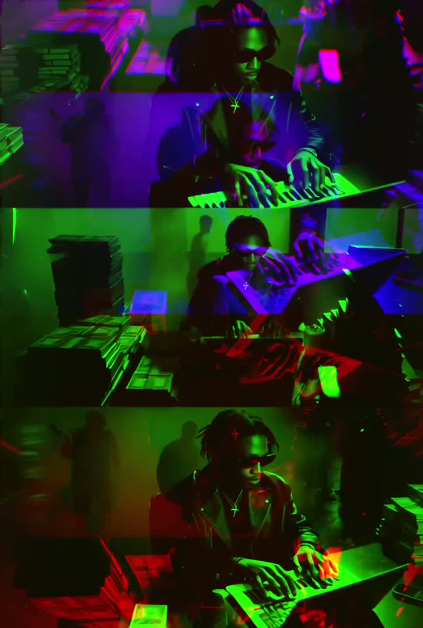 High-Energy Trap-Edm Hybrid, Future Hendrix Type, Pluto Atlanta Trap, 140 Bpm Half-Time Groove, Minor Key Dark Urgency, Crushing Distorted 808 Slides And Sub Bass, Rapid Triplet Hi-Hats Rolling, Crisp Snare On 2 And 4, Deep Pulsating Arpeggiated Synth Bass, Bright Detuned Supersaw Lead With Fast 16Th-Note Runs And Gritty Wobble Distortion, Eerie Bell Stabs, Icy Atmospheric Synth Pads With Long Reverb Tails, Laser Zap Sfx, Reversed Vocal Chops In Background, Punchy Low-End Dominant Production, Wide Stereo Image, Sidechain Pump To Kick, Clean But Dirty With Light Bitcrushing On Leads