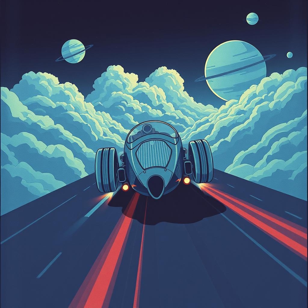 1970s-inspired progressive heavy adventure rock/proto-metal with spacey psychedelic atmosphere, Melodic twin guitars with warm analog fuzz, melodic bass grooves leading the rhythm, natural roomy drums with open hi-hats and vintage tom fills, dreamy analog synth pads and Solina-style strings, spacey organ melodies, Ethereal clean male vocals drenched in reverb and tape delay, cinematic structure with shifting dynamics and epic choruses, storytelling feel of cosmic knights and distant worlds, retro analog production with tape saturation and warm stereo depth, Prog-rock landscape with build up in intensity & explosive larger than life tempo shift (from mid-tempo to fast-tempo), Prevalent Warm, harmonious backing vocals, Extended & layered guitar solo, Longplay like a psychedelic adventure layered rockopera, Mysterious narration voice in the final part, Melodic peaceful outro, ‑pop sound, ‑commercial edge, ‑sweet, ‑soft