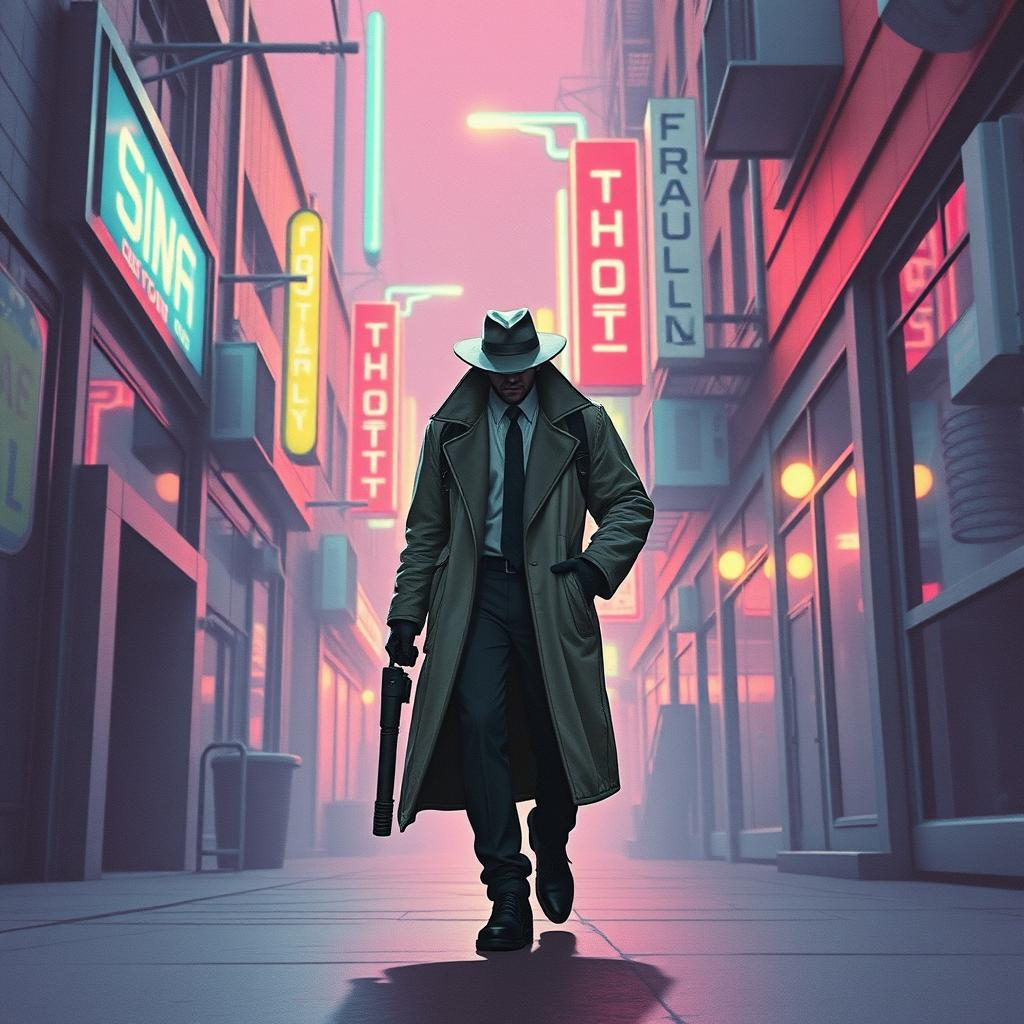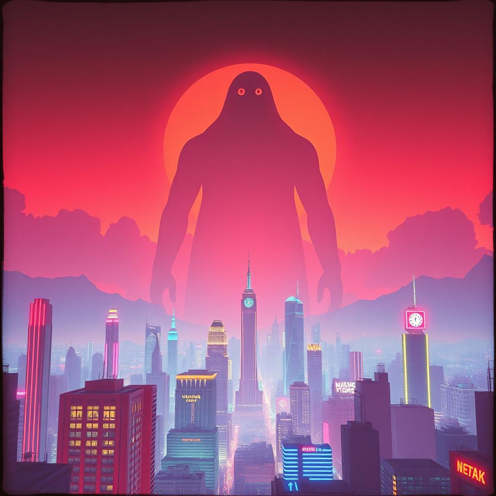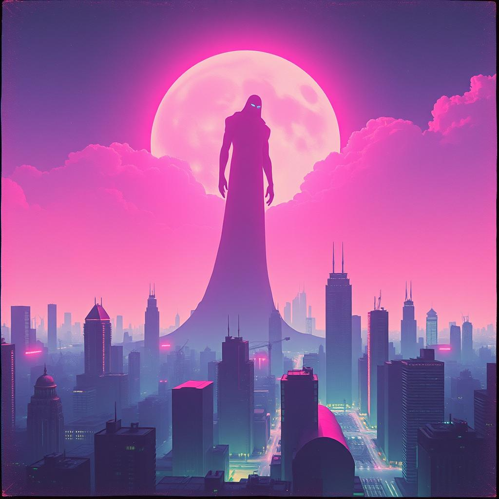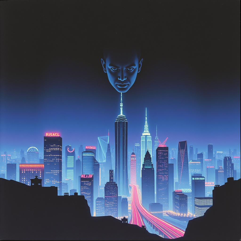 Epic 80s-inspired retrowave soundtrack with raw dystopian synth-wave elements, Driving 4/4 kick and heavy tom fills create relentless motion, while iconic synth riffs pierce through shimmering pads and laser-like arpeggiators, Melancholic yet powerful melodies recall 80s sci-fi action classics, mixing heroism with decay, Vocals shift between dark whispered verses, soaring choruses drenched in reverb and delay, and vocoder-treated shouts for a cyberpunk edge, Gated reverb claps, distorted synth bass, and sweeping FX build a legendary mood Electric guitar power chords add raw energy, Cinematic tension builds into explosive hooks, Extended dynamic solo for climax effect, ‑pop sound, ‑commercial edge, ‑sweet, ‑soft