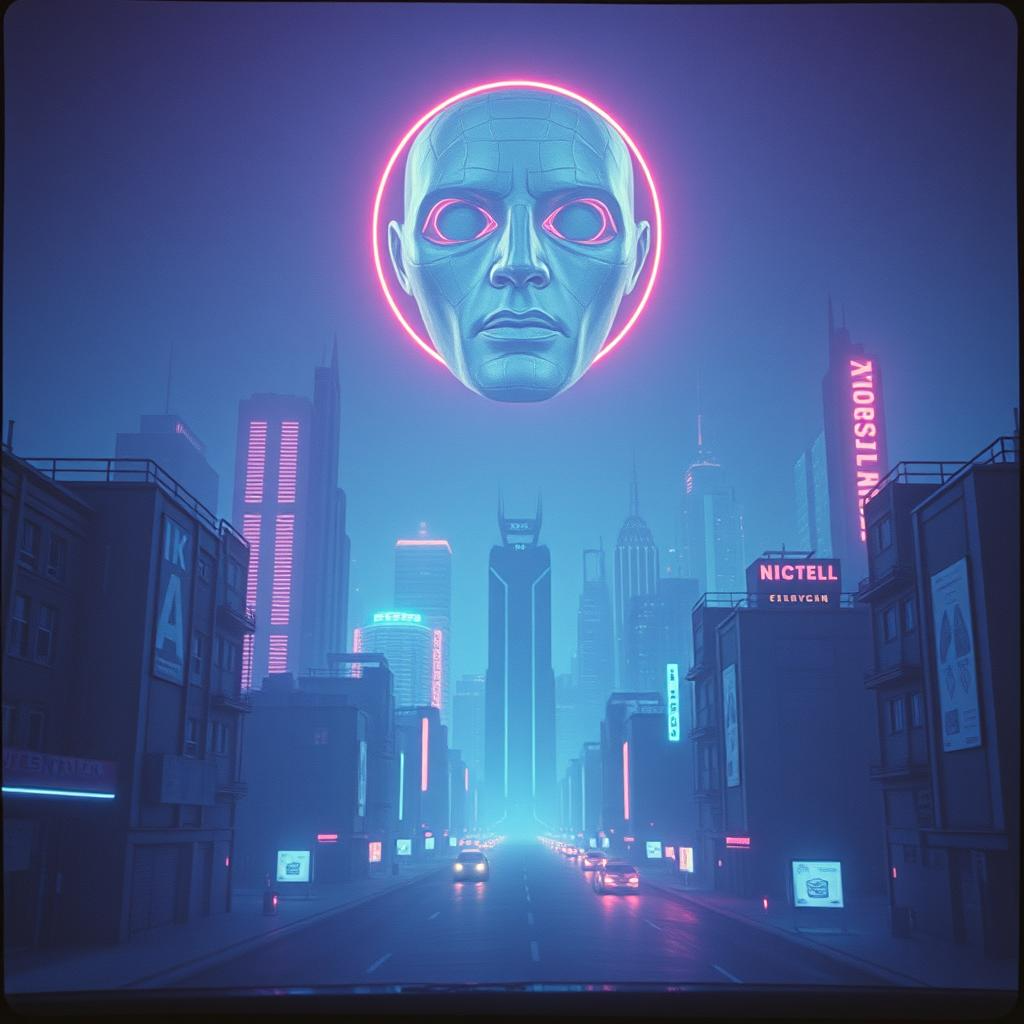 Dystopian 80s-themed synthwave with heavy analog kick, reverb-drenched snares, and pulsating bass arpeggios, Iconic synth hook alternating between bright heroic leads and ominous minor-key jabs, Distorted pads and gritty textures add a raw urban sci-fi edge, like a neon wasteland at night, Female vocals, Vocals are processed with gated reverb, whispered layers, and robotic vocoder parts, blending narration with futuristic chanting, Atmospheric backings, Energetic pacing with dramatic rises and sweeping cinematic FX, delivering a legendary dystopian anthem, Electric guitar power chords add raw energy, Cinematic tension builds into explosive hooks, Extended dynamic solo for climax effect, ‑pop sound, ‑commercial edge, ‑sweet, ‑soft