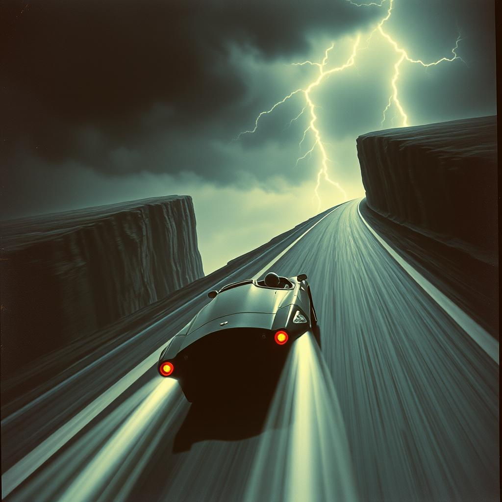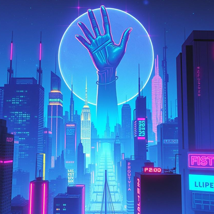 Driving 80s themed cinematic synth-infused retro-futuristic punkrock at 160 BPM with relentless kick, reverb-heavy snares, and dramatic tom fills, Iconic 80s sound and feel, Distorted rock guitars clash with warm pulsing analog basslines, while bold synth stabs and legendary lead melodies dominate the soundscape, Vocals are raw, intense, heroic, and operatic, layered with stadium reverb and wide harmonies like an action-movie theme-song power ballad with heavy rock swag, The mood is cinematic, dystopian, and larger-than-life, like a sci-fi action movie climax, A perfect blend of 80s retro-futurism, with a hint of arena rock energy, and theatrical storytelling, Cinematic tension builds into explosive hooks, Extended dynamic solo for climax effect, Mid-to-uptempo drive, driving steady pounding rhythm section, ‑pop sound, ‑commercial edge, ‑sweet, ‑soft, ‑polished