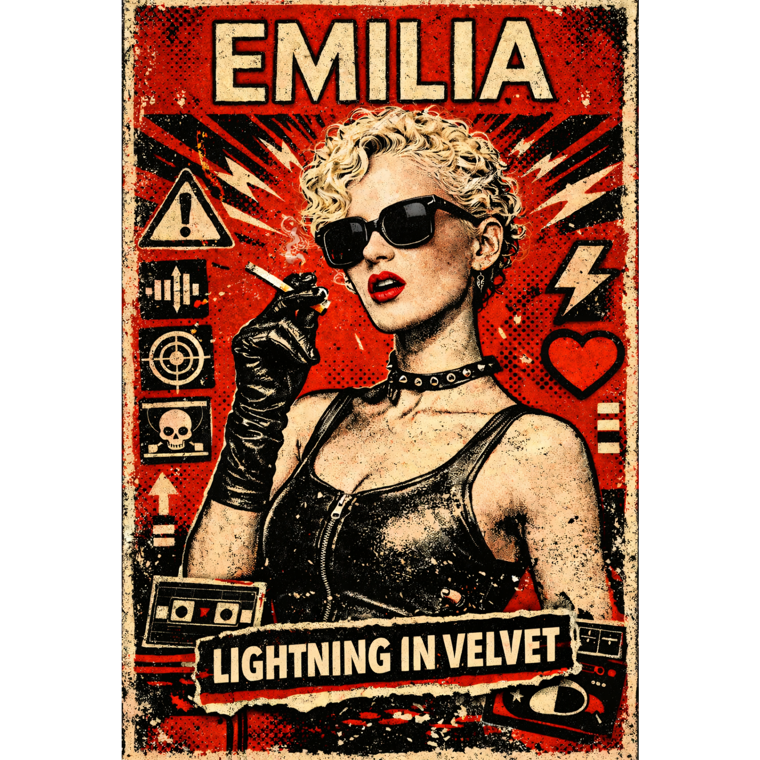 High-energy synth-punk with a rigid four-on-the-floor beat, distorted synth bass, and cold mechanical pulse, Sleazy, futuristic, and confrontational with ironic swagger, Saccharine female vocal delivery—overly sweet, taunting, and artificial, contrasting sharply with the aggressive instrumental, Vocals are husky but deliberately cute, almost mocking, delivered in short, percussive phrases that lock into the groove rather than flow melodically, Militaristic rhythm, hypnotic repetition, glossy but wrong, danceable yet threatening
