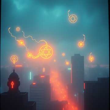 [Bridge] Epic cyber-chant + choral synth pad with FX like shikigami swirl, blade flash, and curse break, Modulate up final chorus like a spirit burst, taiko-drum rhythms, cinematic cyber-orchestration, supernatural flair, high-speed Tokyo exorcism race in a thunderstorm of light, Eurobeat + cyber-shamanism + ancient-modern mystic