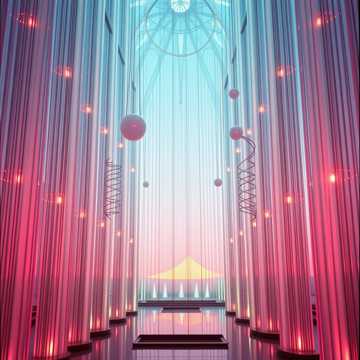 Intricate counterpoint lines transformed into layered synth sequences, bright analog arpeggios, shimmering pads, precise and lively electronic Baroque feel