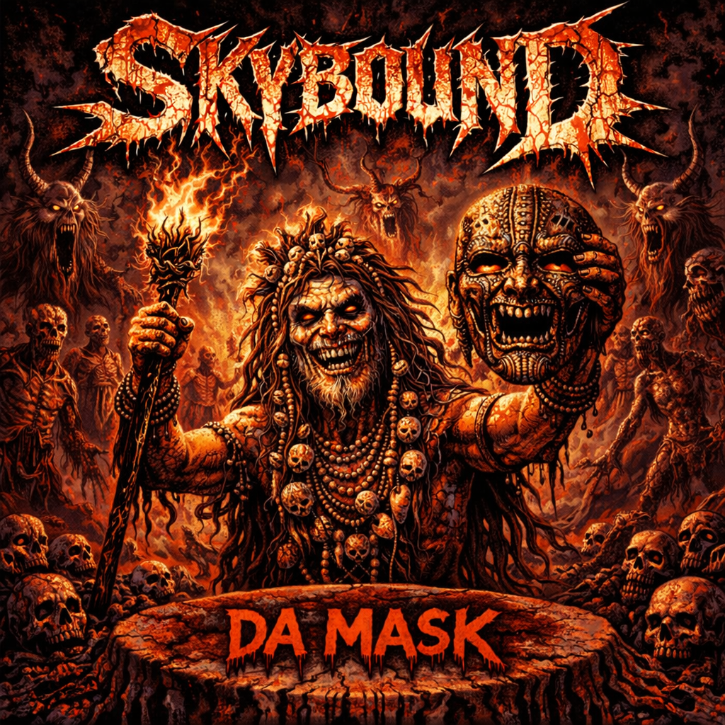 Tribal industrial metal track blending heavy distorted guitar riffs with traditional African percussion and ritualistic chanting, The song opens with a spoken word introduction over atmospheric wood creaks and distant drums, transitioning into a high-energy metal composition at 160 BPM, The instrumentation features down-tuned electric guitars playing syncopated, chugging riffs, a thick distorted bass, and a hybrid drum kit combining standard metal double-kick patterns with organic djembe and log drum textures, Vocals are aggressive and versatile, shifting between deep guttural growls, rhythmic rap-metal delivery, and melodic soaring choruses, The production is dense and cinematic, utilizing heavy reverb on percussion and sharp, biting distortion on the strings, The structure follows an intro, verse, chorus, bridge, and an extended instrumental outro featuring a frantic synth-lead solo and complex polyrhythmic drumming