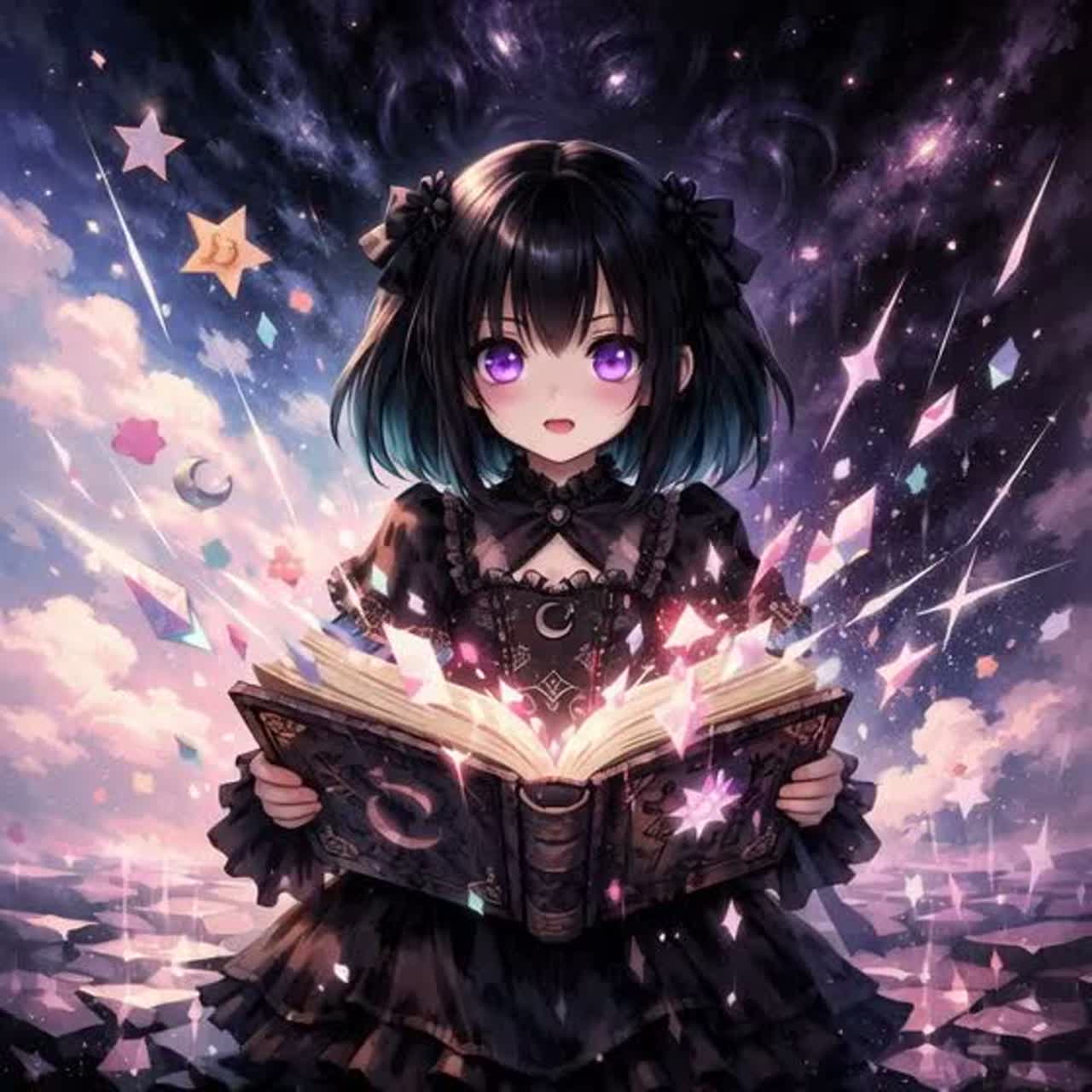 Relentless blast-beat foundation paired with tremolo guitars forms the rhythmic core while chiptune bells and toy-like melodic layers brighten the upper spectrum, Pads and choir textures create vast spatial depth, contrasting the tight midrange distortion, Vocals alternate between intimate, high-clarity kawaii singing and razor black-metal screams with wide stereo doubling on choruses, The overall impression is paradoxical — adorable luminosity suspended inside overwhelming cosmic darkness, energetic yet existential