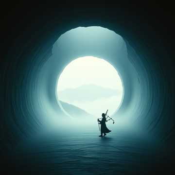 A dark ambient instrumental featuring sustained, cavernous reverb pads that create a cold, drifting atmosphere, Slow-moving harmonic swells rise and fade like distant fog, Over this, a solo bagpipe plays long, mournful drone notes and sparse melodic fragments, its tone raw, ancient, and slightly wavering, The pads provide a wide, hollow sense of space, while the bagpipe’s natural grit adds tension and emotional weight, No percussion, no rhythm, just a slow, immersive blend of haunting drones, eerie ambience, and lonely, echoing bagpipe phrases that feel desolate and otherworldly