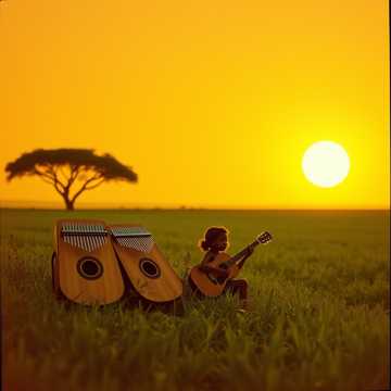 African folk, acoustic guitar, Kalimba, traditional percussion, girl vocal