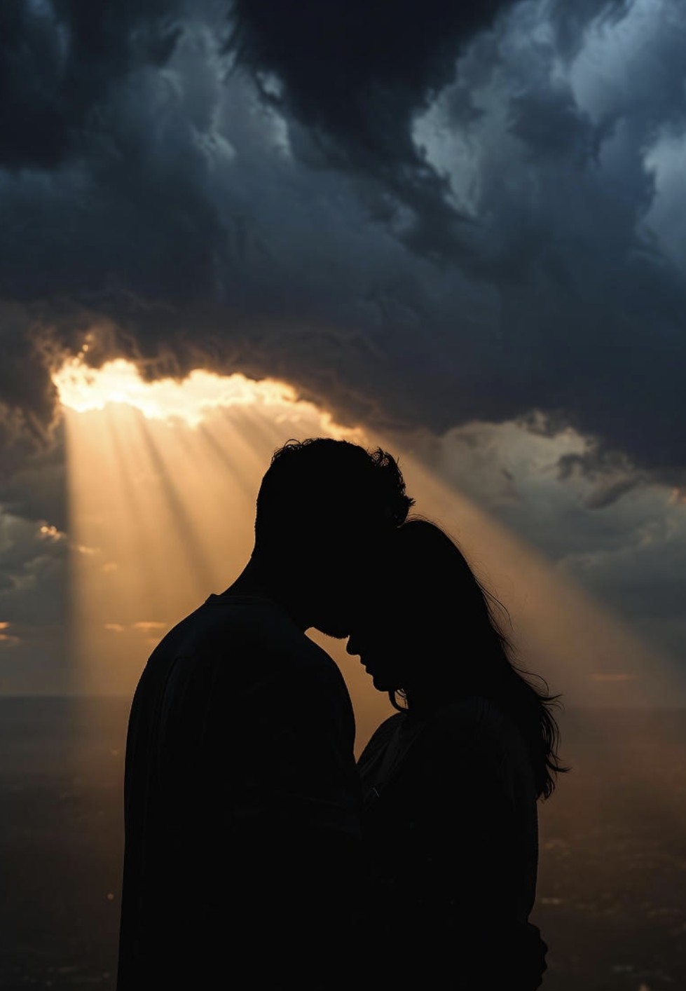 Epic cinematic orchestra in a minor key fused with darkwave atmospheres, deeply emotional and haunting, Sweeping strings, bold low brass, deep timpani, and thunderous percussion are layered with brooding synth pads, pulsing basslines, and moody electronic textures, Haunting melodies, arpeggios, cinematic risers, and one male and one female vocal convey tension, sorrow, and awe, Swells, crashes, and echoing effects punctuate key moments, blending orchestral power with darkwave shadow for an intimate, emotionally charged cinematic experience, Perfect for trailers, climaxes, and dramatic storytelling, ‑Rock, ‑Hardrock, ‑Metal, ‑R&B