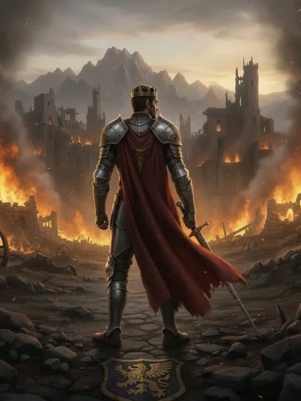 Style: Epic, Orchestral, Cinematic, Tough but Emotional euphoric, Minor key, Big intro in wide stereo, Rest in shimmering reverb, Atmospheric Pads, Drones, Arpeggio, The music is building up as it progresses, Finally ending with a slow fade out, Vocals: A male gothic baritone; deep, resonant, commanding, ritualistic, restrained, shadowy, ‑Metal, ‑Rock, ‑Pop, ‑R&B, ‑Hard Rock