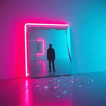 Introspective 80s Synth-Pop Ballad, melancholic synth melody, sparse electronic beat, atmospheric pads, female lead vocal (vulnerable, emotional tone), male low backing vocals, dramatic, slow-tempo, glass-breaking sound effects (optional)