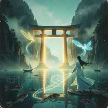 Legendary Folk, Epic Japanese Rock, Cinematic Ethno-Fusion, heavy distorted electric guitar riffs, pounding Taiko drums, delicate Shamisen and Erhu melodies, ethereal synth pads, powerful female vocals, high energy, dramatic transitions