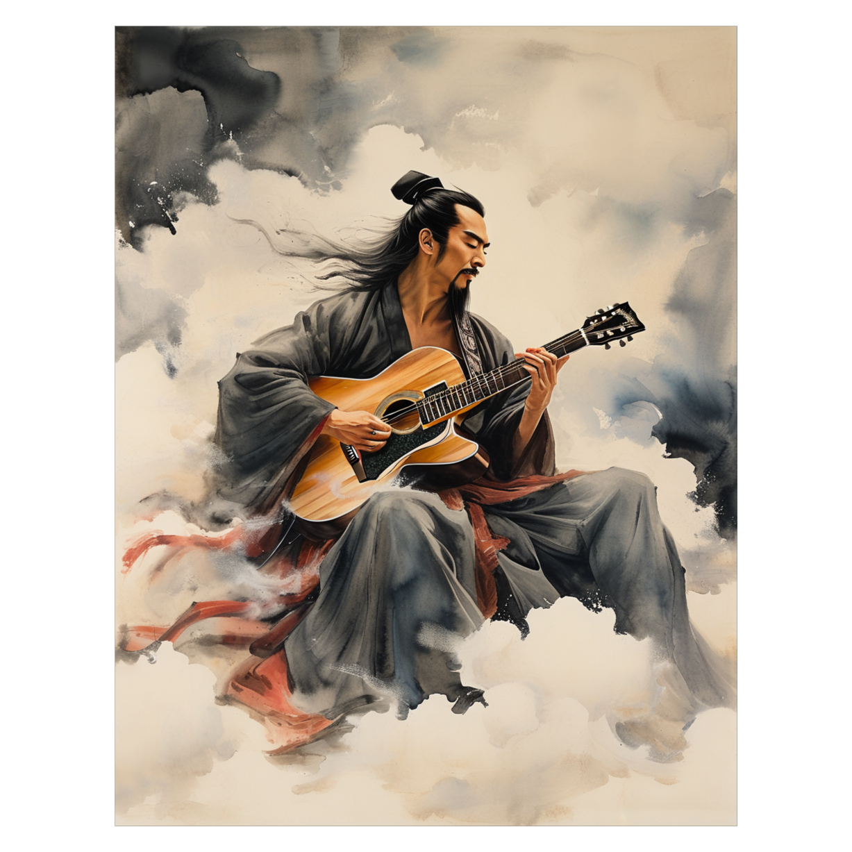 Traditional Chinese Style, Ethereal male Vocal, 120 BPM, Gmaj7-Em7-Am7-D7, Guzheng & Flute