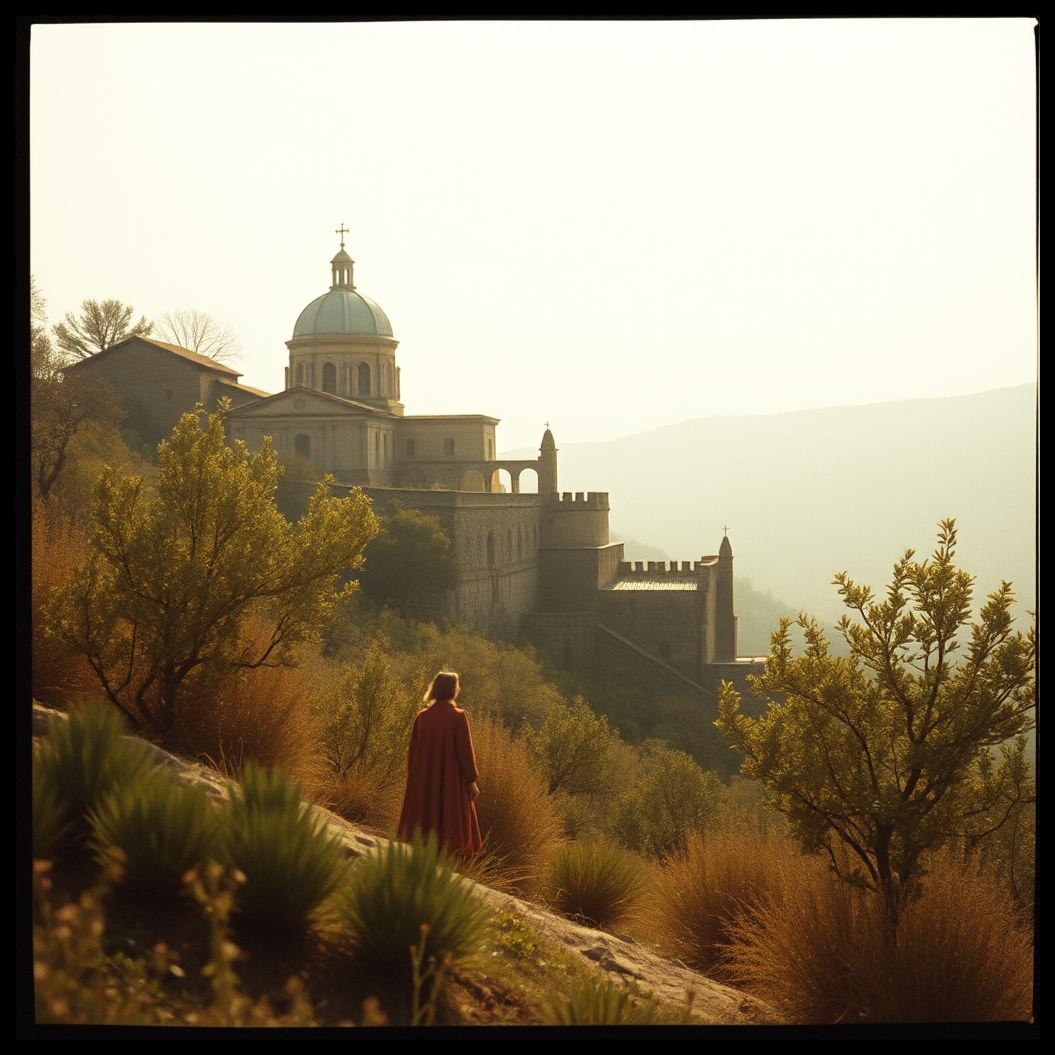 canto gregoriano alternato a orchestra stile vivaldi, ripetizioni, passione, ispirazionale, meditazione cristiana