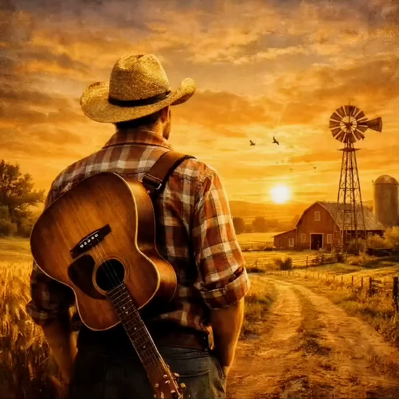 Mid-tempo modern country anthem featuring a blend of acoustic and electric instrumentation, The track opens with a rhythmic acoustic guitar strumming pattern in G major at approximately 84 BPM, A clean electric guitar provides melodic fills with light reverb and delay, The arrangement builds with a steady drum kit featuring a prominent kick and snare, accompanied by a warm, melodic bassline, The male lead vocal is a rich baritone with a slight gravelly texture and a southern accent, utilizing expressive phrasing, The chorus introduces layered vocal harmonies and a prominent fiddle melody that adds a traditional folk-country flair, The structure follows a Verse-Chorus-Verse-Chorus-Outro format, with the production emphasizing a clean, radio-ready mix with balanced compression and a wide stereo field for the guitars and fiddle