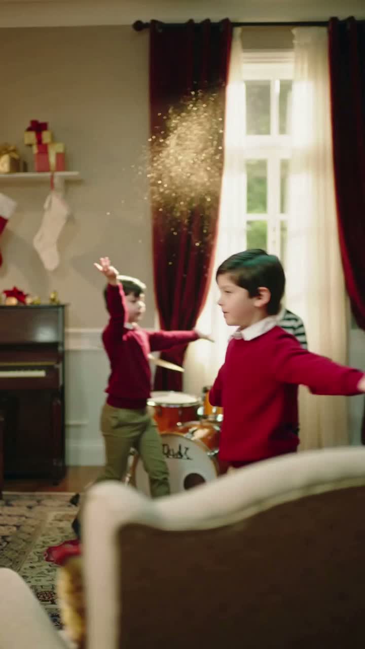 A festive, upbeat Christmas song in a major key, featuring a prominent male lead vocalist and a children's choir, The instrumentation includes a drum kit providing a steady, driving rhythm, a bass guitar laying down a foundational groove, and a piano playing melodic and harmonic support, A bell-like synth sound is used to emphasize the Christmas theme, The song has a clear verse-chorus structure, The male lead vocalist sings with a clear, enthusiastic tone, while the children's choir provides backing vocals, often in unison or simple harmonies, adding to the joyful atmosphere, The production is bright and clean, with all instruments well-balanced in the mix, The tempo is moderately fast, contributing to the energetic feel, The melody is memorable and singable, characteristic of holiday music