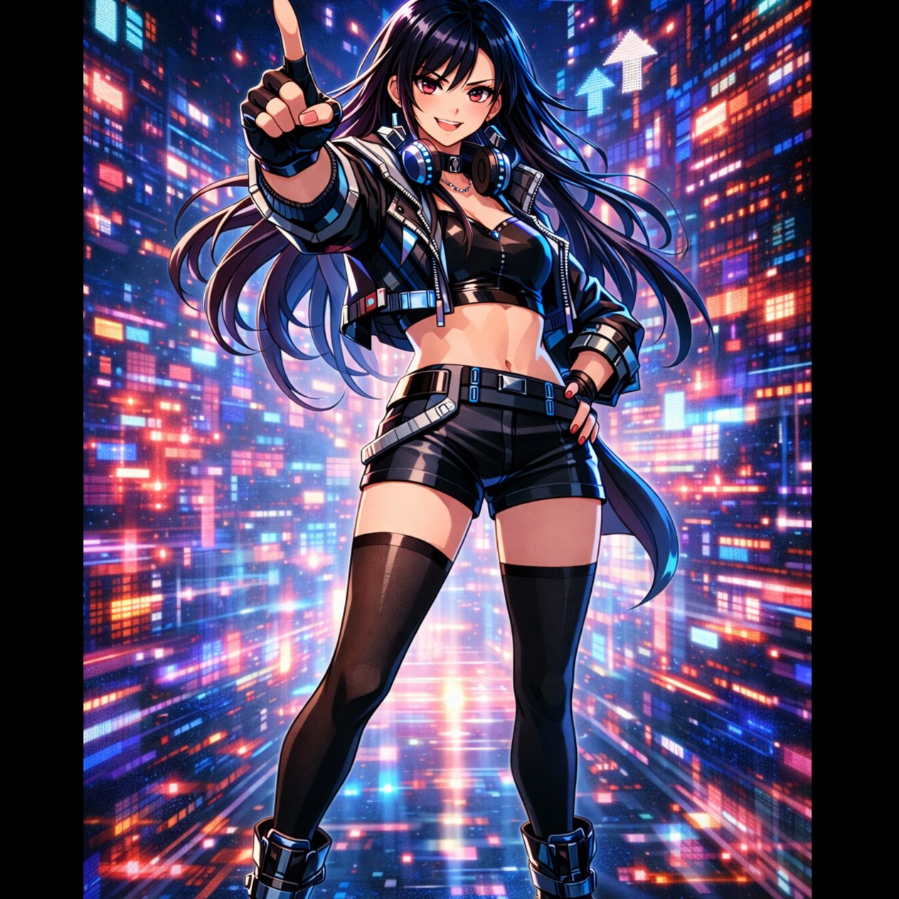 Female vocal with sharp confident tone inspired by modern Japanese electro rap style, Fast rhythmic rap delivery with clear articulation and strong attitude in verses, Rap flow tightly synced to beat, energetic but controlled, Hook delivered as punchy chant emphasizing “サクジョ” with strong rhythmic impact, Chorus switches to melodic singing with bright edgy tone, confident not emotional, layered vocals for modern pop width, Maintain stylish charisma and slightly playful but cold confidence, Intro spoken line cool and dismissive, Verses mostly rap focused with quick phrasing and rhythmic precision, Chorus melodic but still energetic, Outro voice slightly robotic or processed to match digital glitch theme, Overall performance futuristic, stylish and powerful, blending rap flow and electronic pop melody in a cyber club atmosphere, ‑soft ballad vocals, ‑cute anime voice, ‑sweet idol pop singing, ‑opera style vocals, ‑folk singing, ‑heavy rock screaming, ‑metal growl