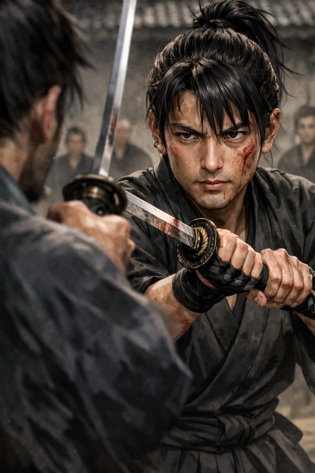 Build this as a Japanese battle anthem driven by taiko, shime-daiko, deep war drums, and heavy foot-stomp pulse, Let taiko and stomps carry the forward motion at all times, Do not let a modern drum kit drive the groove, Keep all rhythm collective, disciplined, pressure-driven, and forward-moving, Use a hard, dry, battle-worn male lead in the verses, Keep the verses narrow-range, stern, and controlled, Let the pre-choruses tighten with held fear and rising collective pressure, Make the choruses hit as unified male war chants with strong unison responses, Keep chorus lines short, command-like, and anthem-heavy, Make “Chesto!” sound like a full-body strike command, never playful, Use distorted guitar only as background weight, not as the rhythmic leader, Add occasional fue or shakuhachi cries as sharp accents, Keep the whole track harsh, martial, stoic, and battle-worn, ‑Live Rock Drums, ‑Drum Kit Groove, ‑Snare Backbeat, ‑Pop Drums, ‑EDM Drops, ‑Trap Hats, ‑Trap Groove, ‑Swing, ‑Funk Groove, ‑Bright Festival Energy, ‑Matsuri Cheer, ‑Pop Sweetness, ‑Comedy, ‑Dreamy Fantasy, ‑Elegant Court Music, ‑Ornate Traditional Decoration