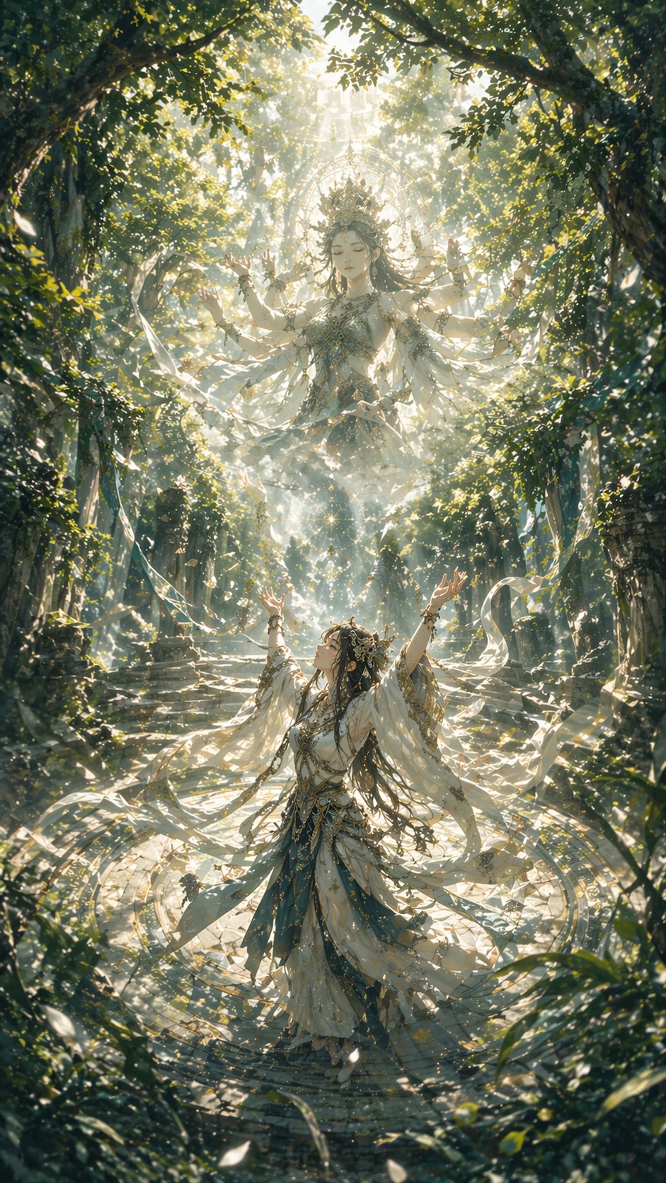 Traditional Javanese Gamelan with distant sindhen-inspired female ritual chant, Keep the vocal deeply blended into the gamelan resonance and never place it at the front, Let bonang, saron, kenong, kempul, deep gong cycles, and subtle kendang motion shape the whole piece, Build spacious cyclical flow, metallic sacred resonance, and ancient temple atmosphere, Use soft hazy ornamented female chant, floating phrase endings, long vowels, and distant ah-chant as background mist, Keep the mood like a fantasy game blessing ritual: solemn, mystical, calm, ceremonial, and non-triumphant, Let the instruments remain dominant while the voice feels like part of the air and reverb