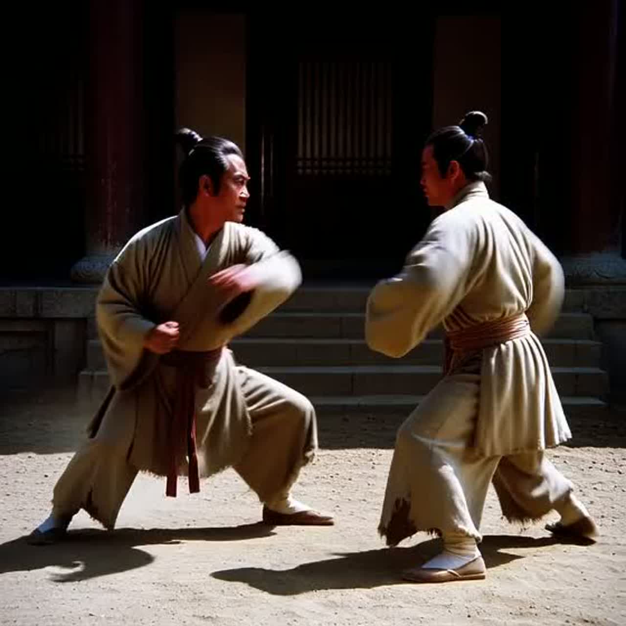 Style: Gangsta rap, gritty lo-fi, Vinyl crackle throughout, Distorted 808 bass, hard kicks and snares, All instruments use Japanese or Chinese Kung Fu sounds, Mood: Old Kung Fu movies, tense, cinematic, martial arts energy, Instruments: Kung Fu loops (gongs, wood blocks, bamboo flutes, metallic hits), layered with 808s and percussion, Vocals: Male rapper with a hard, powerful voice — deep, rough, and commanding, delivering lyrics with confidence and attitude, Aggressive, rapid-fire flow with complex wordplay, intellectual and streetwise lyrics, mixing storytelling and battle rap elements, The overall vibe is raw, powerful, and epic