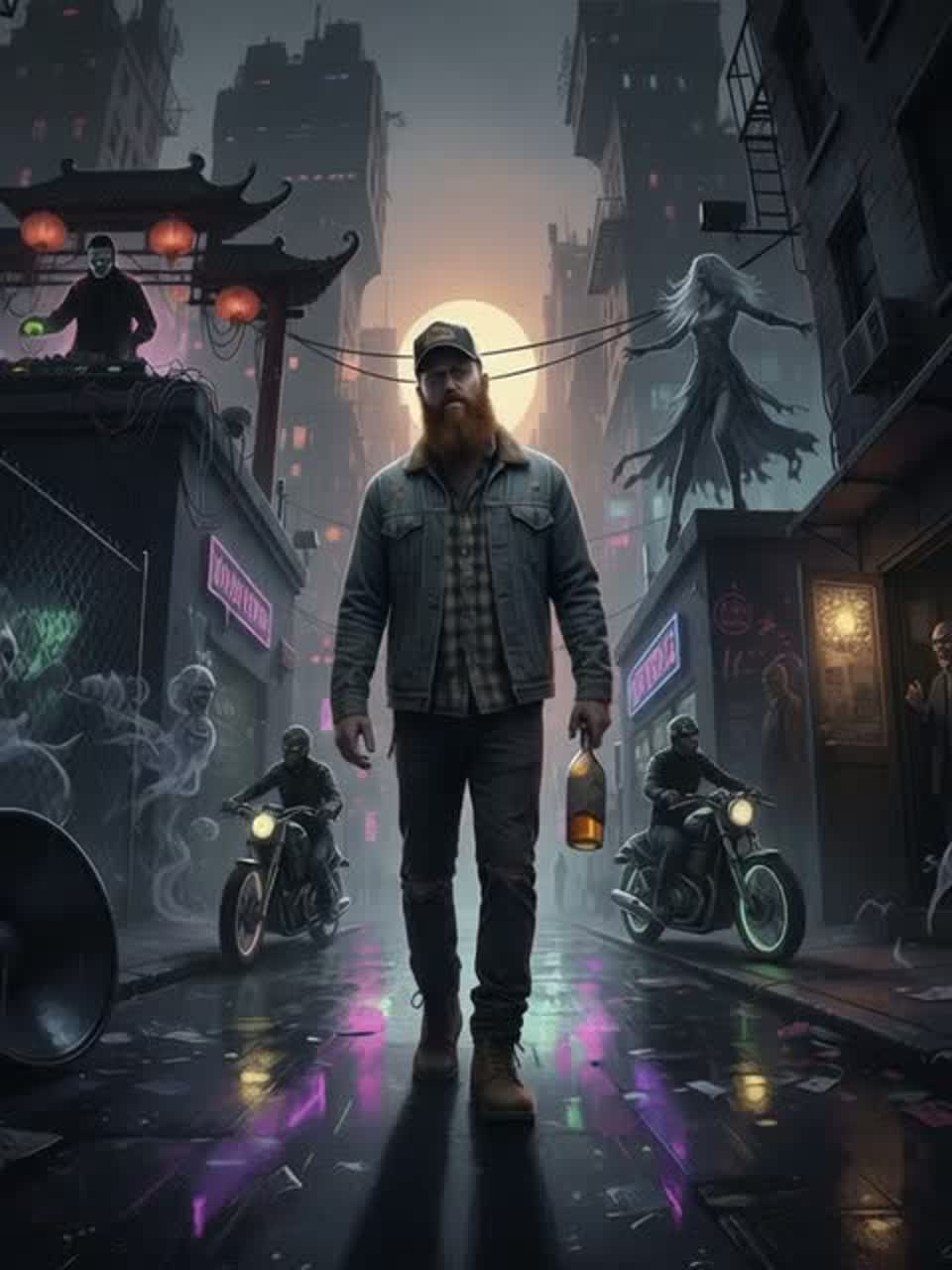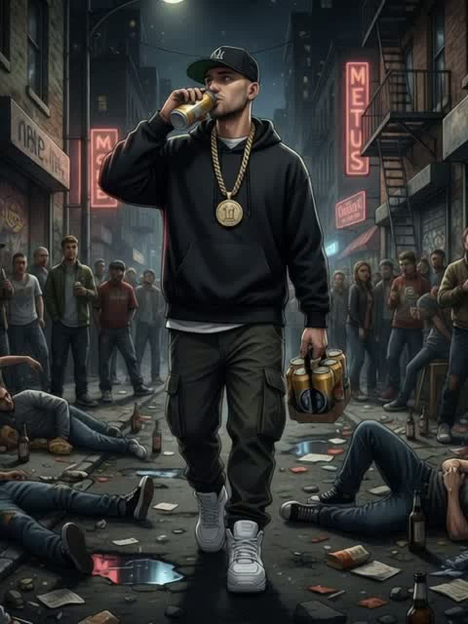 Raw, powerful, and epic — like an underground cipher in a smoke-filled alley or a rising shadowy street empire, ‑Rock, ‑Hardrock, ‑Pop, ‑Metal