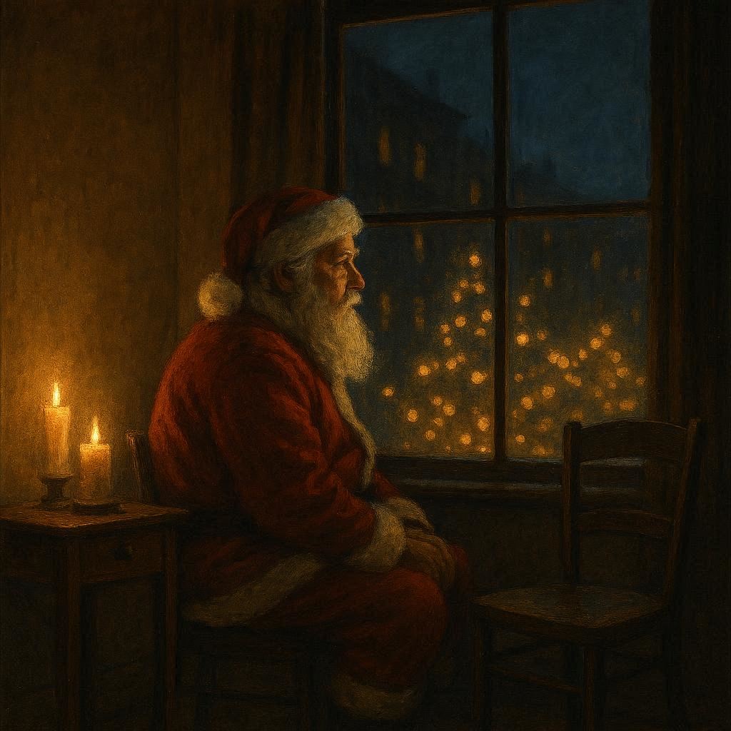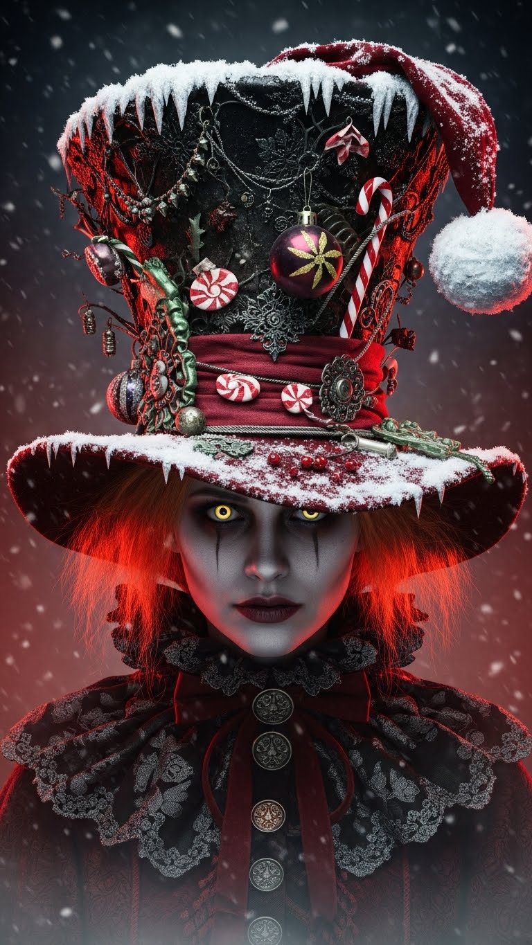 Dark Whimsical Christmas, mischievous holiday atmosphere, crooked sleigh-bell clanks, eerie festive woodwinds, playful yet shadowy orchestral swing, smoky low brass punctuations, off-kilter toy-box percussion, sly winter ambience, crooked candy-cane charm, magical but slightly spooky snowlit textures, narratively theatrical, hushed dramatic builds, impish energy, creeping warmth under a veil of mischief, storybook-nighttime tension mixed with crooked Christmas cheer, ‑angelic choir gospel opera bright pop