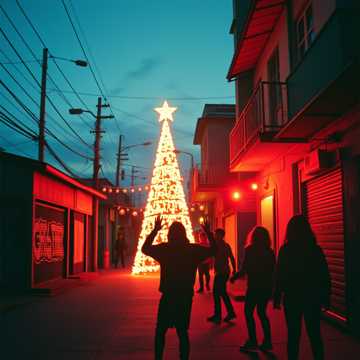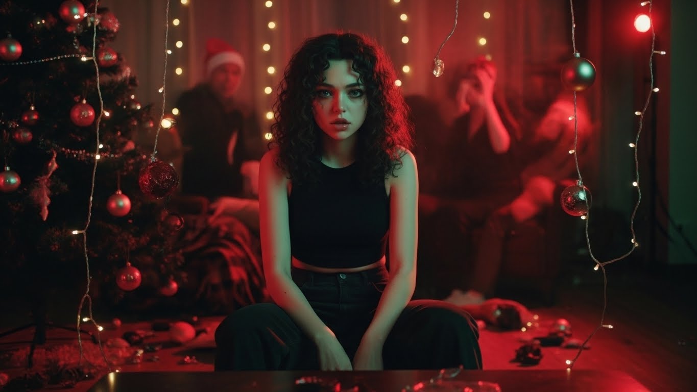 French Electro-Pop, Club Bedroom House, Velvet Bassline, Whispered French Loops, Catchy Chant Hook, Groovy Club Kick, Mirror Echo FX, Hypnotic Club Reverb, Subtle Funky Hi-Hats, Stereo Delay (L/R Alternating Echo), Sleigh Bell Rhythm Layer, Warm Holiday Glow FX, Analog Tape Warmth, Soft Pulse Pads, Dreamy 80s Groove, Retro Electric Melody Arpeggio, 128 BPM, Key: A minor