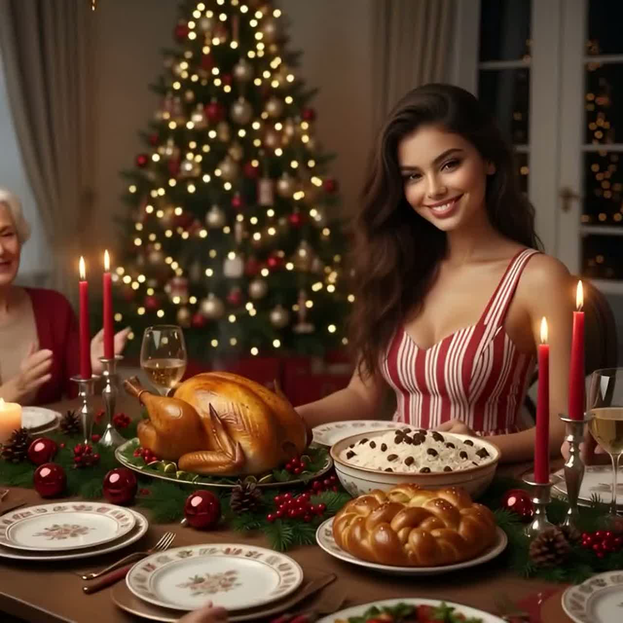 Christmas song with a warm and emotional mood, gentle piano as the main instrument, soft orchestral arrangement in the background, young female lead vocal with a Brazilian accent, sweet and clear tone, Christmas bells subtly throughout the song, becoming more present in the chorus, Traditional carol feeling with modern polish, Chorus featuring a small choir backing the lead vocal, creating a festive and uplifting atmosphere, Mid tempo, heartfelt, family friendly, nostalgic yet joyful, perfect for Christmas celebrations