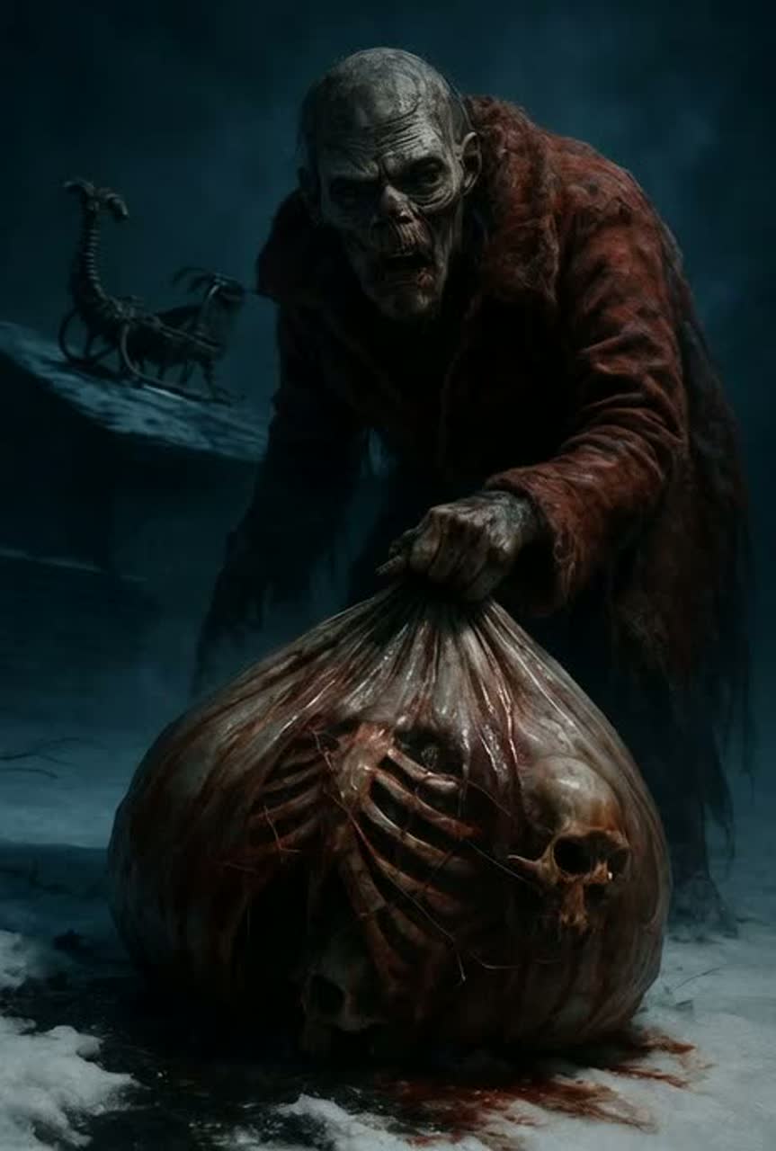 [Symphonic Death Metal | Blackened Deathcore | Christmas Metal | Blast Beat Drums | Double Kick | Clean Mix | Wide Stereo | Distorted Tremolo Guitars | Orchestral hits | Tubular Bells | Church Organ | Guttural Growls | Demonic Screams | Wall of Sound | Dark Atmosphere | Aggressive | High Fidelity | 180 BPM]