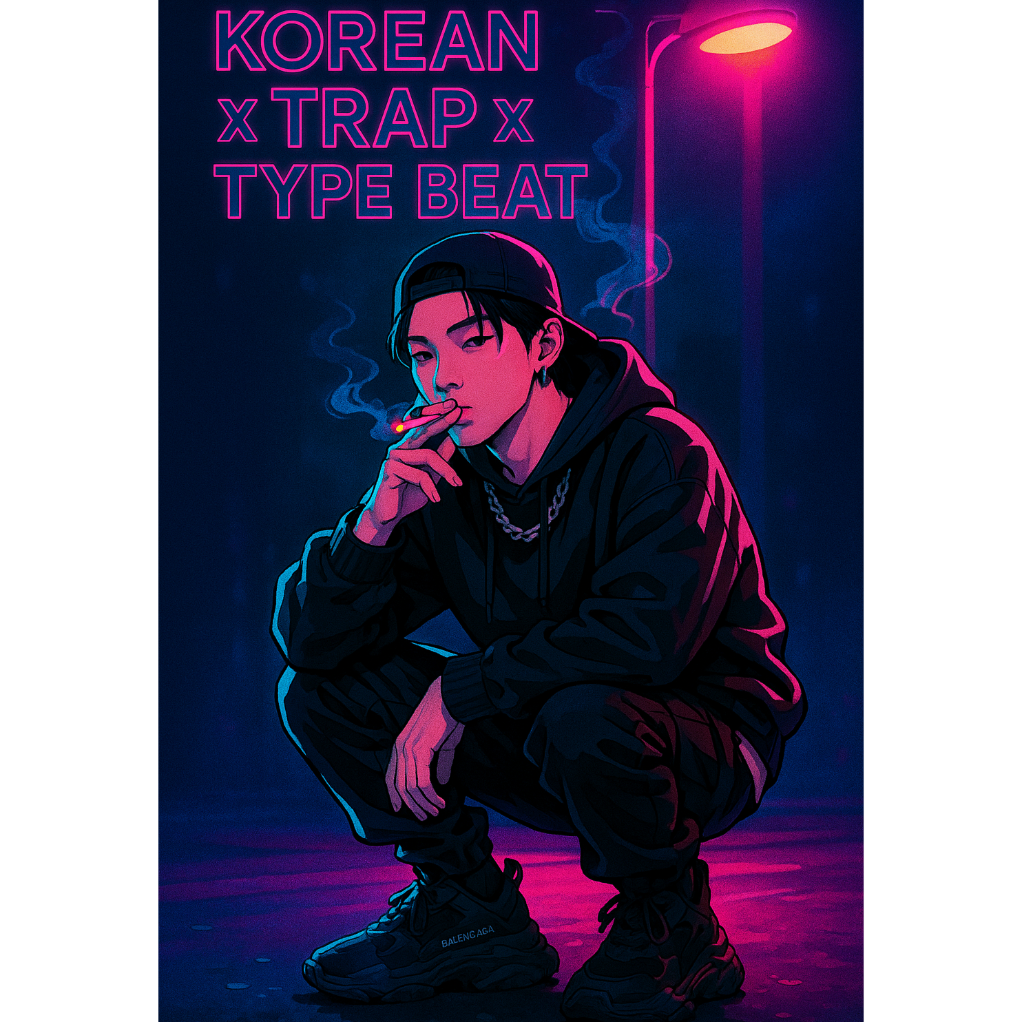 Icy synths set a stark mood over crisp 808s and heavy drill hi-hats, Sparse piano riffs punctuate the beat, layering with cutting sub bass, Angular Korean trap vocal flows glide above, riding the sharp rhythmic groove, Minimal, stylish production details keep the sound edgy and current