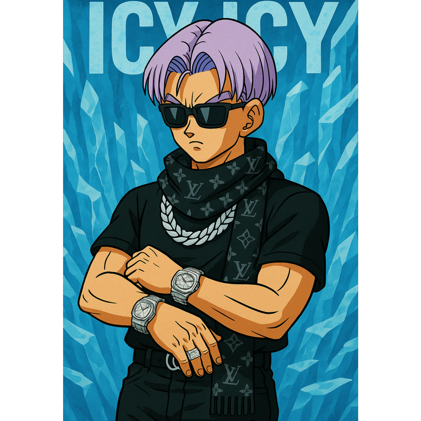 Hard-hitting luxury trap beat, tempo ~144 BPM, Deep sliding 808s with tight, bouncy kicks and sharp snares, Hi-hats with triplet rolls and subtle swing for groove, Minimal but icy chord stabs on dark synths, layered with sparkling bell/pluck melodies to feel cold and frosty, Occasional orchestral hits and airy pads for cinematic feel, Verses more stripped back with space for rap flow, hooks open up with wide synth layers and vocal chops to emphasize the catchy "ahchoo" moment, Clean modern mixing with punchy low end and crisp highs