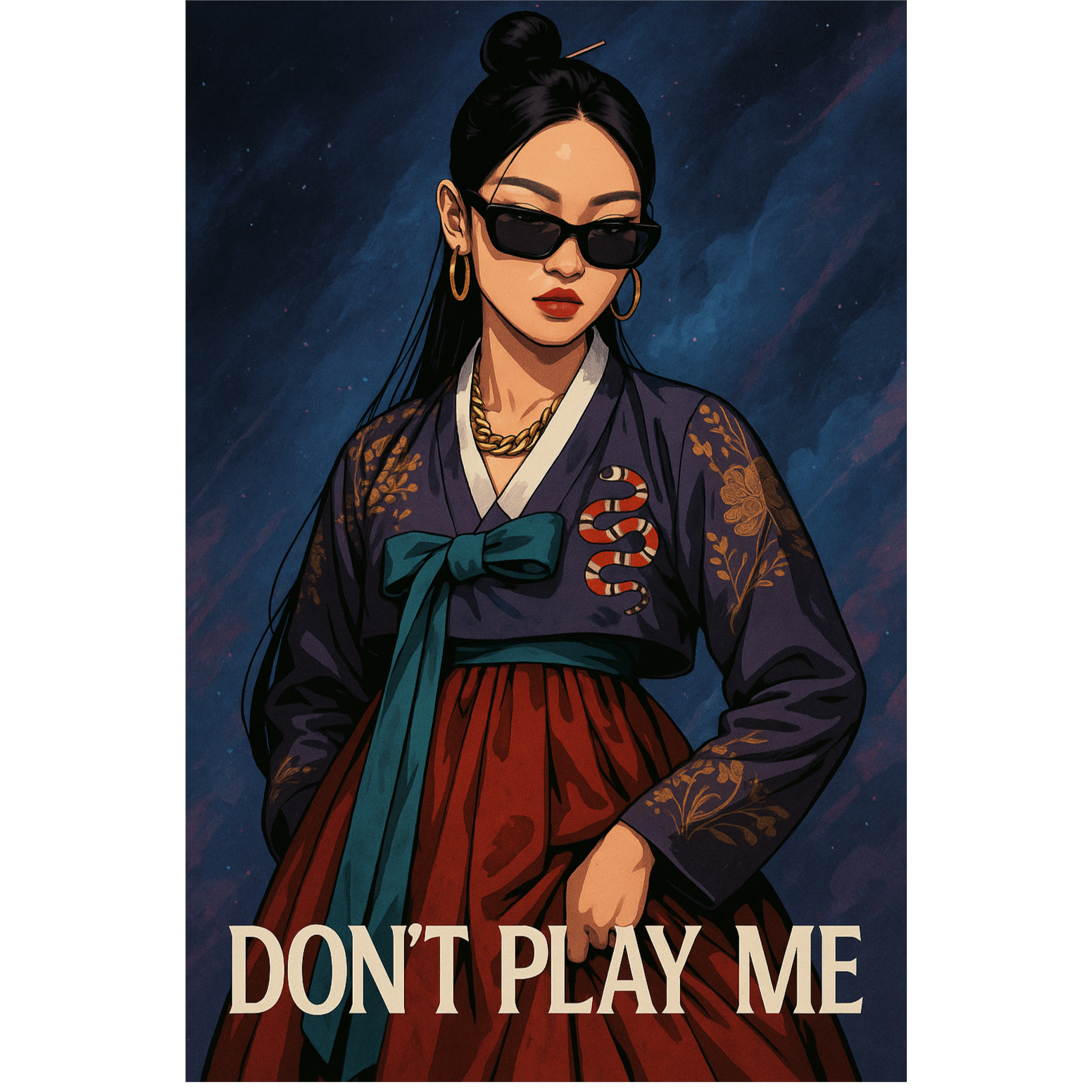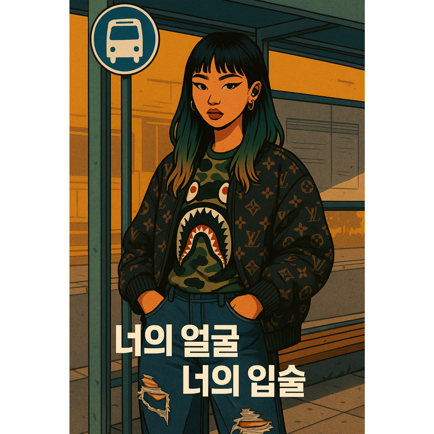 Melodic trap fuses psychedelic trap, cloud rap, and dreamy R&B with woozy synths and reverb-heavy, ambient trap beats, Warped vocals and underwater textures open, layered with glitchy ad-libs and chopped vocal stabs for street swagger, The drop moves into Korean-English mumble rap over minimalist percussion, accented by crisp clap rolls, vinyl crackle, and subtle 808 slides, Choruses hit with pitched samples, wobbling bass, rapid hi-hats, and dark fashion-show energy, Verses evolve with playful flow switches, chopped-and-screwed transitions, ambient pads, and sultry, smooth R&B lines under breathy female harmonies, The bridge twists the vibe with reversed and stretched vocals, metallic percussive hits, and cloudy synth swells, leading into a final, densely layered chorus — dripping in sub-bass, shimmering arps, and club-ready bounce for a wavy yet confident close