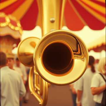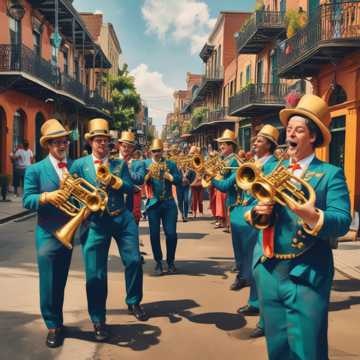 dirty south balkan brass band, chorus, tuba, trombone, snare drum, cajun accent, syncopated, balkan, fast, cymbal