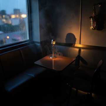 Noir jazz atmosphere with alto saxophone, clarinet, and jazz club ambiance, Smooth male vocals, contemplative and warm, Lyrics about witnessing and presence, Bossa nova influences, Sophisticated, intimate tone, Around 90 bpm, Harp and light trumpet accents, Soulful and grounded