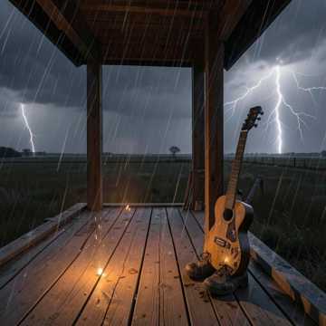 Country, sad and contemplative, Thunderstorm atmosphere with rain ambiance, Minimalistic guitar and piano, Male vocals, gruff and weathered, Lyrics about uncertainty and change, Slight echo and reverb, Around 70 bpm, Depressing but grounded, Campfire crackling ambiance