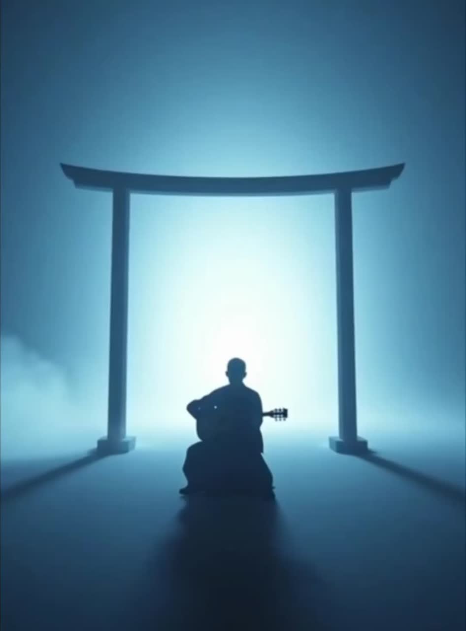 Japanese traditional Observation Ritual, Shamisen-led minimal awareness, Post-DeathCore (deconstructed), Ambient Glitch, Cyberpunk Dark Texture (background)