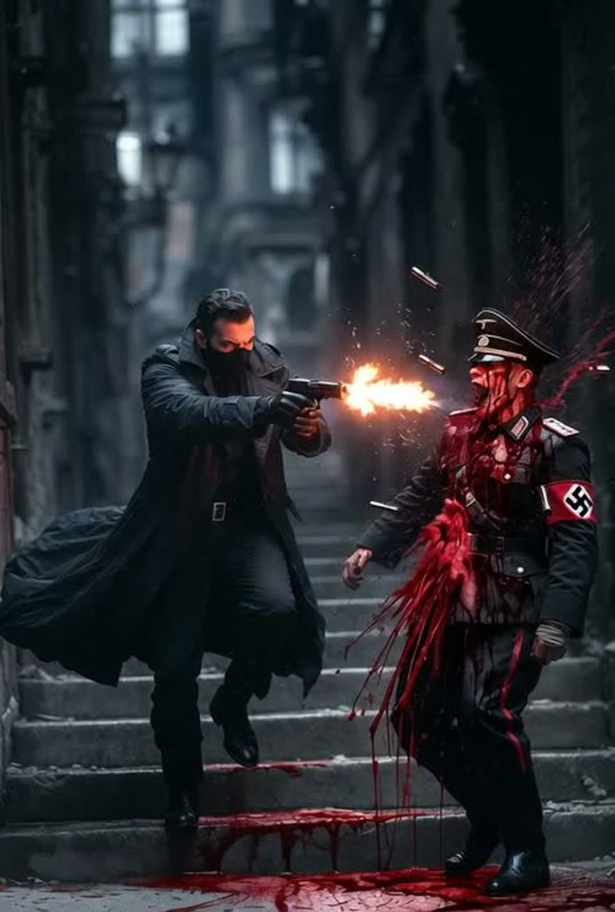 Uptempo techno-pop/dance-pop at 115-120 BPM, glossy electro-club synths, pulsing bass, building tension, Verses: breathy, sultry whisper-to-chest mix, subtle stutters (c-c-comin'), intimate/teasing menace, Pre-chorus: rising flirtatious escalation, Chorus: full powerful belting, obsessive energy; deliver "Pop-pop-poppin' Nazis" with the exact rhythmic stutter/repetition as "Papa-paparazzi" – quick, punchy pops like gunshots/camera flashes, seductive yet triumphant, Bridge: playful/dark finger-snaps/taunts, dramatic build, Overall: theatrical drama, obsessive pursuit flipped to righteous hunt; breathy intimacy → explosive belts, wide vibrato, raspy edges on key words (hunt, trigger), Attitude: glamorous grit, unapologetic larger-than-life justice anthem, Echo "pop-pop" effects, shadowy production