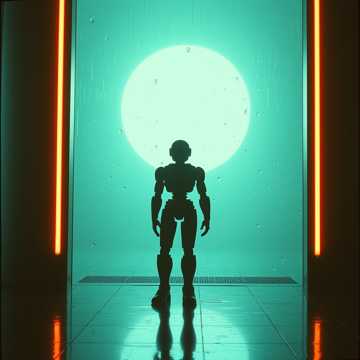 Existential glitch-hop E minor 85 BPM 4/4 contemplative unsettling, Dynamics: intimate robotic verses build to anthemic hollow chorus stripped philosophical bridge, Duration: staccato bit-crushed fragments long legato notes abrupt digital silence, Form: V-V-Ch-V-Bridge-Outro, Harmony: minor suspended 2nds/4ths uncertainty tritone substitutions dissonant unresolved, Melody: robotic autotuned verses raw vulnerable belt chorus irony wide leaps 9, 5 gap, Meter: 4/4 occasional 3/4 5/4 hiccup bars, Pitch: mid robotic soaring hollow falsetto sub-bass high digital glitches, Rhythm: mechanical glitch-hop stuttering sidechain driving four-on-floor kick empty propulsion sparse brushed snare bridge, Texture: homophonic cold digital artifacts granular synthesis vs warm analog strings, Timbre: bit-crushed distorted vocals cold wavetable synths warm Juno pads vinyl crackle metallic reverb
