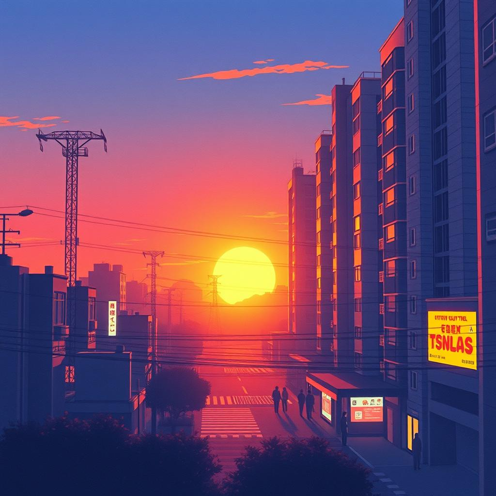 Uptempo emotional breakcore × J-pop hybrid with glitchy pikopiko chiptune elements, Fast-paced, cinematic energy fusing tribal dubstep and indie electronica, Intro: urban ambience + reversed pads + distant train + digital rain, Verses: fragile Japanese female vocal (breathy tone), minimal percussion, soft detuned synths, and emotional chords, **Chorus**: explosive drop — glitchy chiptune leads, breakcore drums, and layered male/female harmonies, Robotic echoes blend with passionate screams, Bridge: atmospheric synth break, fading filters, introspective and dreamy, **Final Chorus**: distorted brightness, euphoric chaos, and washed-out warmth, expressing hypnotic comfort in control, Mood: melancholic yet trance-like, blending fear and serenity under a red digital sun, Mastering target: Dolby Atmos / 48kHz / 145 BPM
