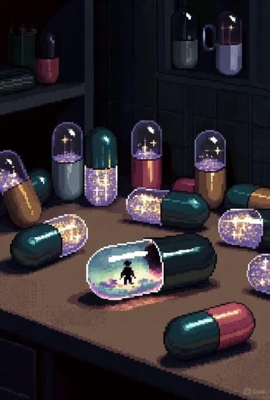 Unheard experimental fusion, starting with eerie glass harp glissandos and reversed pads in slow verses, building with polyrhythmic tribal beats and rising synth pulses in prechorus, exploding into a wild breakcore chiptune mashup in chorus with glitchy pikopiko synths, chaotic vocal chops, and maximal tension, [Verse: weary daily grind, fragile whispers, slow haunting vibe] [Prechorus: surreal tribal shift, tempo accelerates] [Chorus: breakcore chaos, pikopiko explosion, layered manic vocals] [Bridge: sudden silence, dripping water echoes] [Outro: fading glitch and cosmic hum]