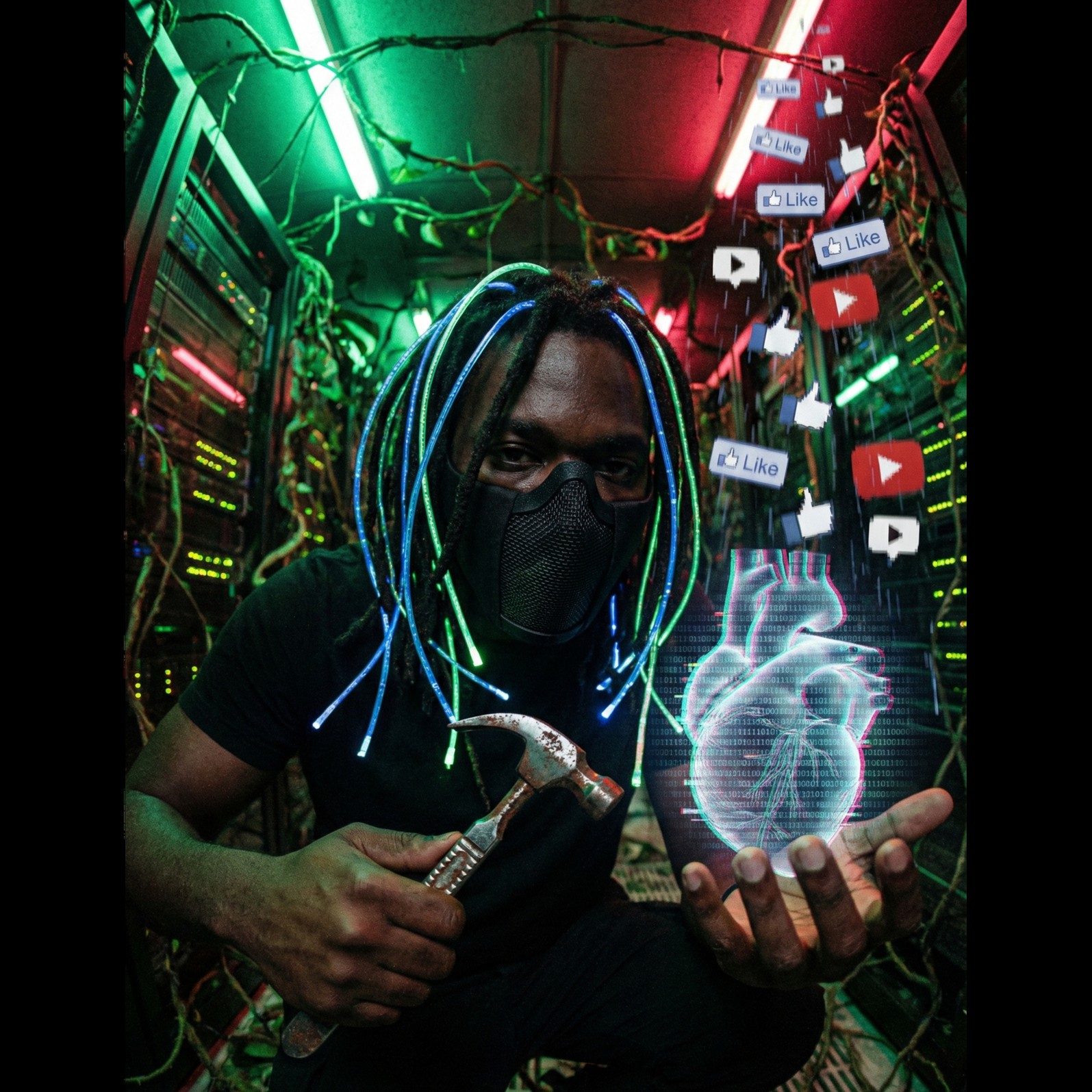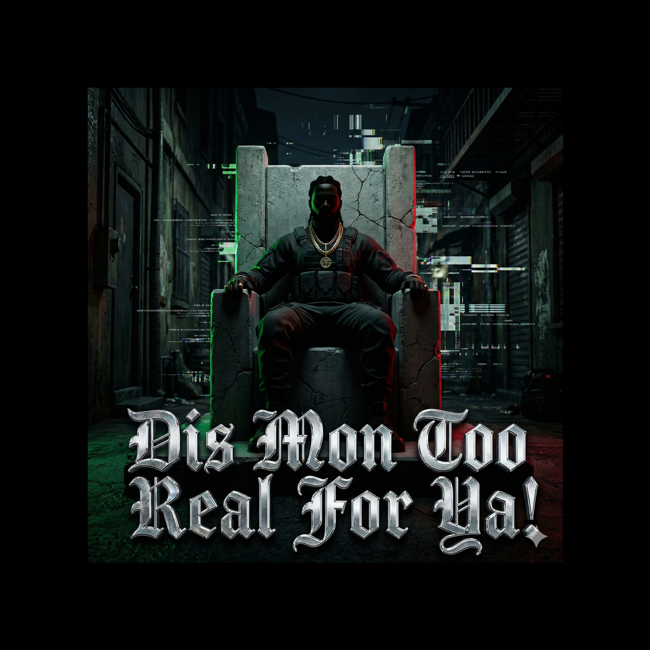 Experimental Nu-Metal Drill Fusion, 102 BPM, Key of C Minor, [Mastering Target: V-Shape EQ Curve], Production features [Down-tuned 7-string Chordophones] layered with [Distorted 808 Sub-bass slides], Percussion utilizes [Transient-Shaped Snare] and [Ghost-Note Hi-Hats], Vocals are "Zero-Onset" Auto-Tuned Ragga-Drill, switching between [Whispered Paranoia] and [Guttural Baritone Roar], [Mastering: Multiband Compression on Master Bus], MASTERING TARGETS (VIRTUAL DSP INJECTION):