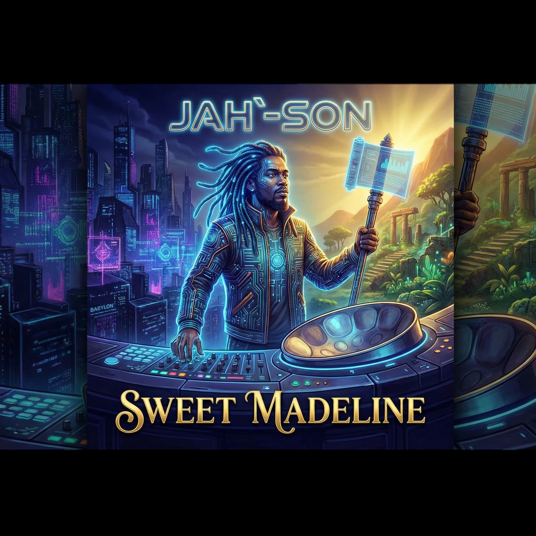 [Acoustic Physics: High-Fidelity Reggae-Trap Fusion], [BPM: 142 Half-Time], [Key: B Major], [Instrumentation: The primary melodic driver is a "Chromatic Concave Percussion" (Steel Pan) featuring shimmering harmonic overtones, sympathetic resonance in the 5th octave, and a warm Helmholtz decay, heavily widened via mid-side processing, The low-end is anchored by a "Bridged-T Network Oscillator" (TR-808 Kick) featuring distinct diode starvation, a 20-60Hz sine wave pitch-dive, and distorted sustain], [Rhythm: A hard 60:40 blend of "One Drop" Reggae kick placement (beat 3 emphasis) and Atlanta Trap hi-hats (1/32 note triplets with velocity ramps)], [Vocal Engineering: The lead vocal is a "Baritone Singjay" style—deep, resonant, and masculine—processed with "Zero-Onset Pitch Quantization" (Hard Auto-Tune) to create a robotic step-effect while strictly preserving the throat formant to prevent high-pitch artifacts, The delivery uses Tremolo volume oscillation rather than vibrato][Final Master, ‑Generic "Tropical House" presets, ‑stock MIDI marimbas, ‑plastic-sounding bongos, ‑"Vacation" or "Beach Party" vibes, ‑upbeat commercial pop chord progressions, ‑cheesy major scale melodies, ‑thin or weak drums, ‑muddy low-end frequencies, ‑frequency masking between kick and bass, ‑excessive reverb wash, ‑unrefined delay tails, ‑mumbled or unintelligible vocal delivery, ‑high-pitched "chipmunk" vocal artifacts, ‑helium voice, ‑soft or breathy singing, ‑falsetto domination, ‑traditional jazz drumming, ‑rock distortion, ‑EDM risers, ‑dubstep wobbles, ‑techno four-on-the-floor rhythms, ‑country twang, ‑operatic singing, ‑whispering, ‑spoken word without rhythmic flow, ‑abrupt or glitchy endings, ‑fade-outs (unless explicitly requested), ‑distorted high-end frequencies, ‑harsh sibilance on vocals, ‑piercing cymbals, ‑phase cancellation in the stereo field, ‑stereo width applied to sub-bass (must be mono), ‑dry or unprocessed vocals, ‑lack of compression, ‑weak transients, ‑soft attack envelopes, ‑orchestral string sections