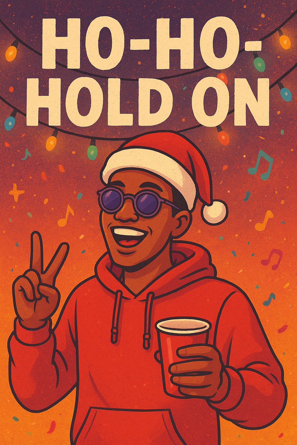 Christmas pop trap hip hop, melodic, danceable, upbeat, sleigh bells, deep 808 bass, modern vocals, festive party atmosphere