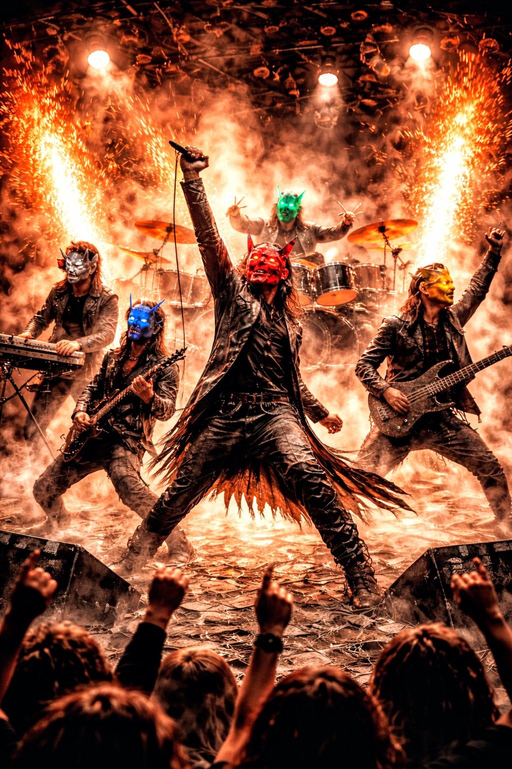LivePerformancestyle, male vocals&VisualKeiVoice&noiseVoice&Cool and sexy voice&emotionalVoice&Dramatic, Emotional, Passionate, Operatic, Whisper, Melodic, Visual Kei, Gothic Rock, Melodic, Emotional, Fast-paced, Piano, Intense Drums, ラウド: Metalcore, Post-Hardcore, Screamo, Aggressive, Heavy Guitars, Breakdown, Fast Drums, Metalcore band performing on stage, lead singer screaming into mic, tattoos and piercings, strobe lighting, sweat, energetic, photorealistic, dramatic action shot, cinematic, 4k, Visual Kei male singer, heavy makeup, long black hair, Victorian gothic outfit, playing guitar on dark stage with red spotlight, dramatic pose, high resolution, photorealistic, Vocal Edge, High-pitched male vocals&A clear voice&noiseVoice, guitar, bass, dram, Violin, Synthesizer, PowerfulSound&VisualKeiSound&TechniqueSound&TechniquePlay&PowerfulPlayEnergySongSpectacularsoundemotionalGuitarrock&VisualKeirock, noise, Explosive and spectacular sound, 【The parts in brackets are】(AudienceChorus)