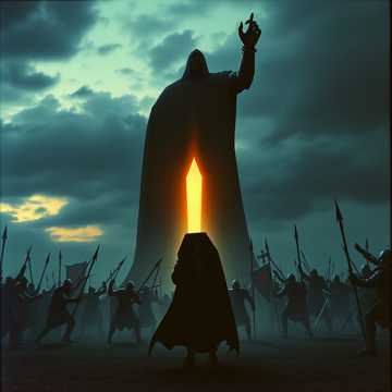 metal, Epic symphonic metal with haunting choirs, downtuned guitars, and double-kick surges; verses brood over minor-key strings and tolling bells, then the chorus explodes with towering choirs, tremolo leads, and soaring Male vocals over a relentless rhythm; bridge drops to ghostly piano and whispered choir before a final, full-throttle reprise