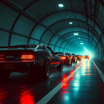 Create a high-energy cinematic club track, Phonk x Drift House x EDM Trap, BPM 145, Male American vocal, confident rap-sung delivery, rhythmic flow, Structure: Intro → Verse → Pre-Chorus → Drop → Post-Chorus → Verse 2 → Pre-Chorus → Drop → Bridge → Final Drop → Outro, Instruments: punchy kicks, distorted 808 bass, rolling hi-hats, snappy claps, phonk cowbells, dark piano stabs, orchestral brass, aggressive synths, sub-bass layers, FX: engine revs, gear shifts, tire screeches, ignition, sirens, collision sounds, risers, impacts, reverb, delay, distortion, sidechain, bass boost, Spoken voice narrating the chase in intro, pre-chorus, and bridge with reverb/delay/pitch modulation, Mood: high-speed chase, neon city, adrenaline, cinematic intensity, festival-ready club energy, Weirdness 25%, Style Influence 100%