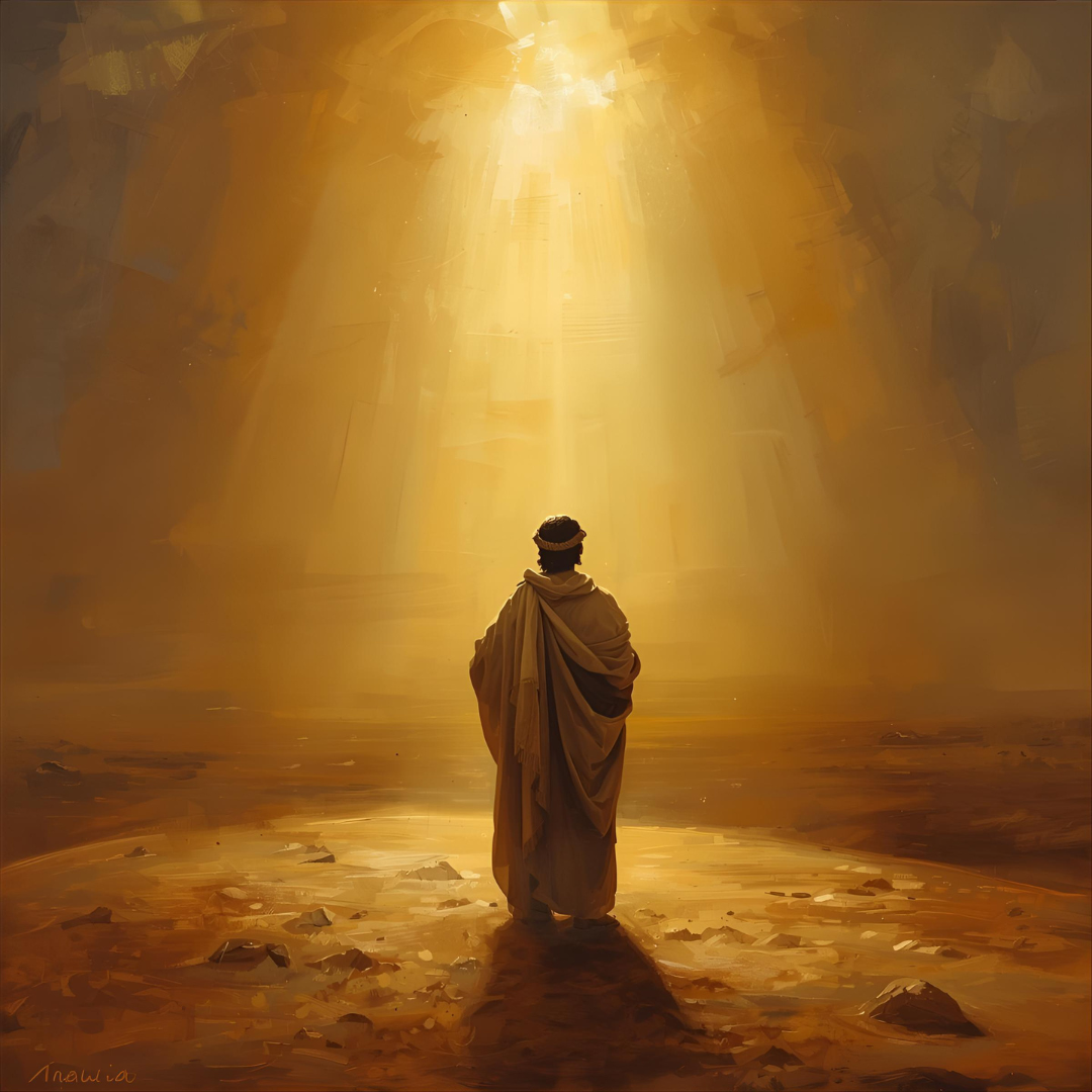 Contemporary singer-songwriter, reflective and contemplative, mystical atmosphere, acoustic-driven, reverent tone, minor key progression to major resolution, 70-80 BPM, 4/4 time, intimate and wondering vocal delivery, spiritual depth, hopeful and mysterious, gentle building dynamics