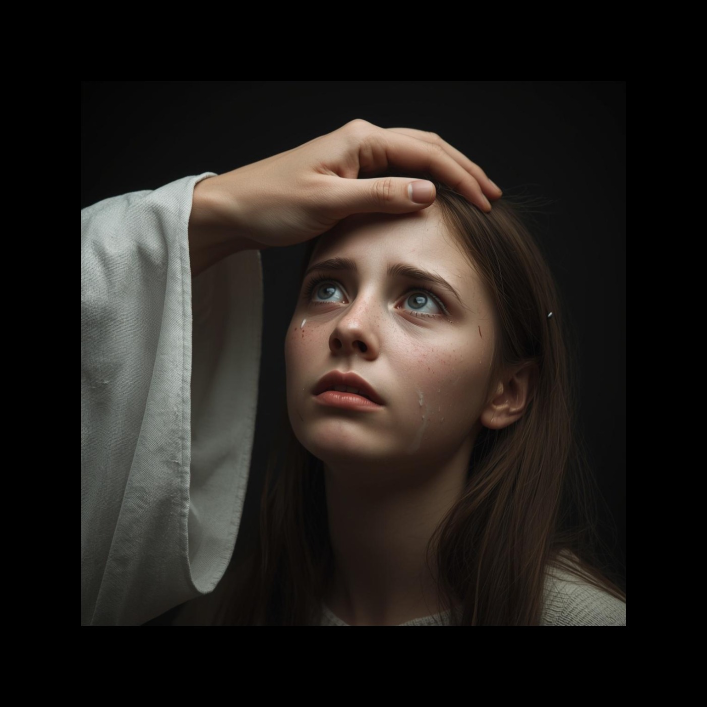 Acoustic folk gospel, fingerpicked acoustic guitar only, soft wordless hummed vocal intro, intimate and bare, single female lead vocal, breathy and intimate delivery, close-miked vulnerability, gentle vibrato, unhurried phrasing with natural breath pauses audible, soft falsetto on high notes, pure and unadorned tone, tender and prayerful, no heavy runs or melisma, hymn-like simplicitygentle harmony in final chorus, no drums, no electric instruments, slow tempo 68 BPM, 4/4 time signature, deeply personal and prayerful, raw and heartfelt, quiet and reverent, fades to silence at outro