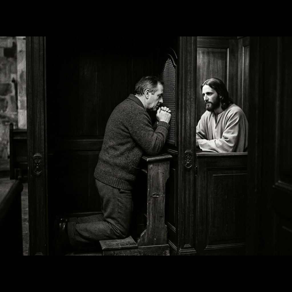 Sacred worship, piano and vocal only, intimate male vocals, storytelling style, 75 BPM, E minor to G major, expressive piano, arpeggios to chords, dramatic dynamics, cathedral reverb, emotional yet reverent